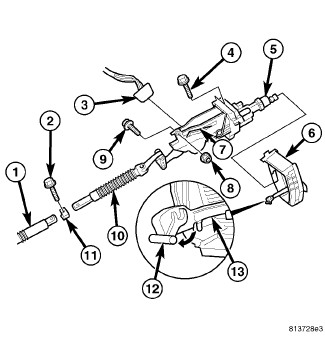 The tilt, telescoping and electronic telescoping steering column (5) is designed to be serviced as an assembly (including the intermediate shaft (10)); less wiring, switches, shroud, steering wheel, etc. Most steering column components can be serviced without removing the steering column from the vehicle.