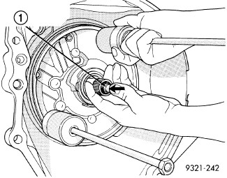 55. Using a small chisel (1), carefully open the stakes on nut (2).