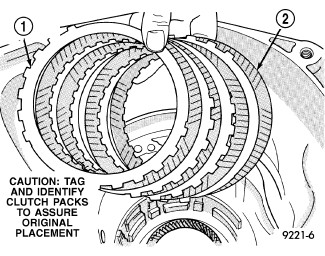 51. Remove one (1) low/reverse clutch disc to facilitate snap ring removal.