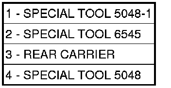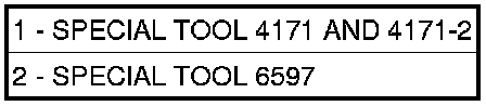 60. Use Wrench 6597 (2) and handle C-4171 (1) and C-4171-2 to press the rear output shaft bearing cup rearward.
