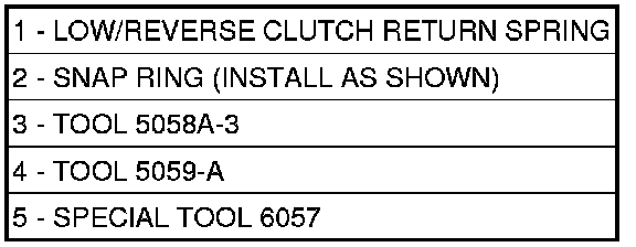NOTE: Verify that Compressor Tool 5058A (1) is centered properly over the 2/4 clutch retainer (4) before compressing. If necessary, fasten the Compressor Tool 5058A bar to the bellhousing flange with any combination of locking pliers and bolts to center the tool properly.