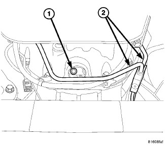 27. Connect the cooler line fittings (2) and cooler lines (1) to the transmission.