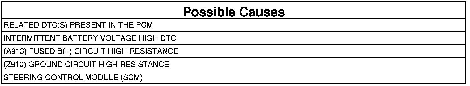 If the voltage to the Steering Control Module (SCM) is above 16 volts for more than one minute.