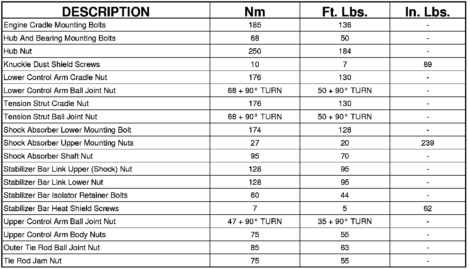 Front Suspension Specifications