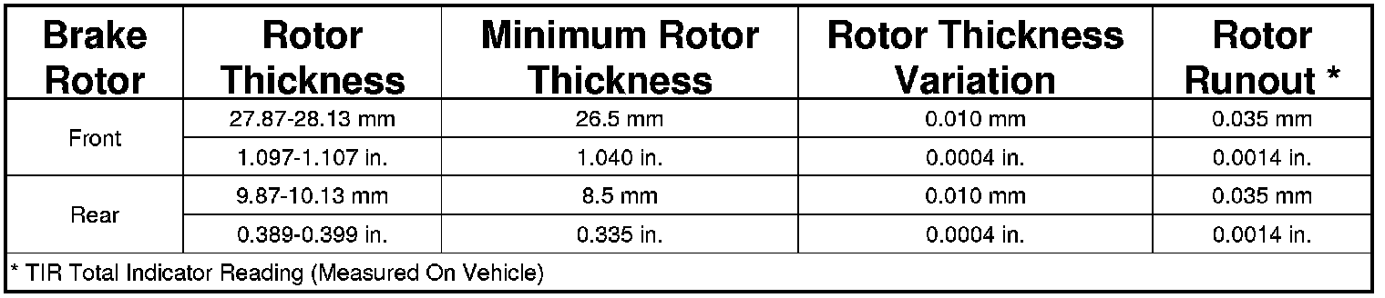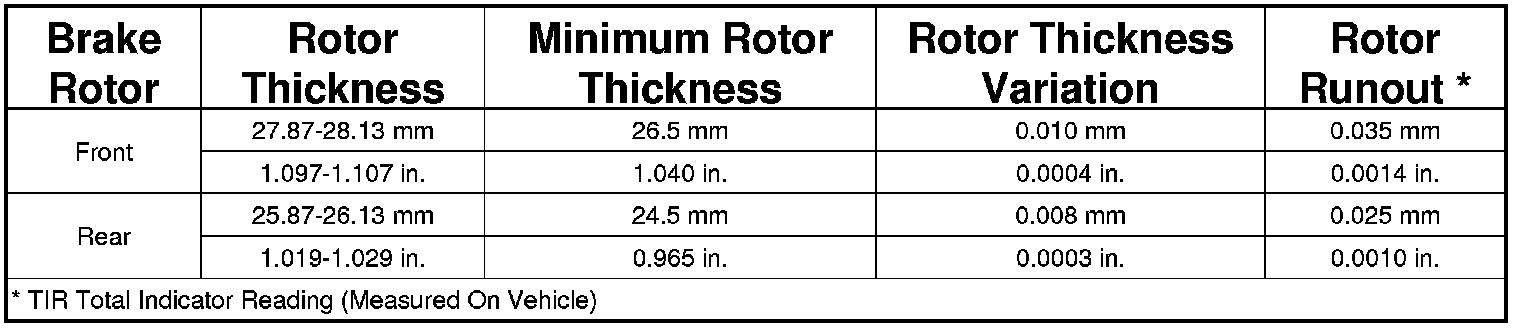 LIMITS/SPECIFICATIONS - SRT8 BRAKES