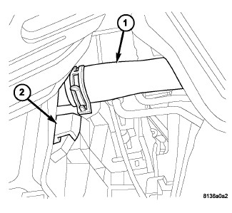 40. Position the front section of the A/C suction line (2) into the engine compartment.