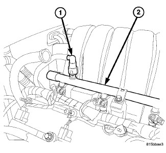 NOTE: The Manifold Absolute Pressure (MAP) sensor (2) is located at the rear of the intake manifold (1).