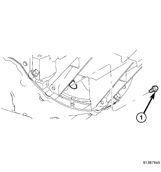 8. Install the transmission (3) to oil pan (2) bolts (1) and tighten to 39 Nm (29 ft. lbs.).
