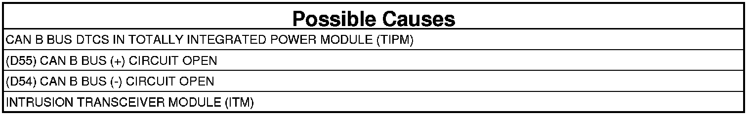 - Repair the (D55) CAN B Bus (+) circuit for an open.