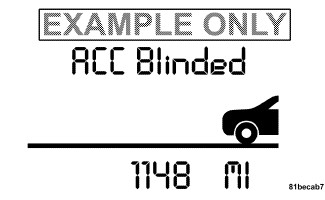 The ACC Blinded Warning will display when conditions temporarily limit system performance. If the ACC Blinded message appears while driving, the driver can switch modes to normal cruise control mode. See "Changing to Normal (Fixed Speed Cruise Control) Mode". This most often occurs at times of poor visibility, such as in snow, fog, heavy rain, or when driving into direct sunlight (sunrise or sunset). The ACC system may also become temporarily blinded due to obstructions, such as dirt or ice. In these cases, the EVIC will display "ACC BLINDED."