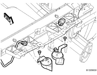 1. Position horn. Install and tighten mounting fasteners.