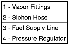 Right side fuel module with vapor fittings (1), siphon hose (2), fuel supply line (3), and pressure regulator (4)