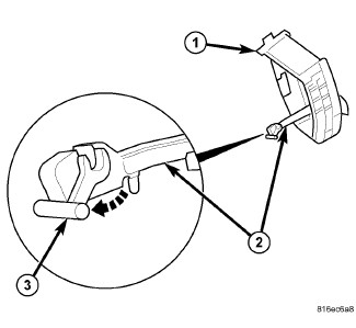 9. Back out the set screw (1) through the access hole (3) in the steering column control module (SCCM) (2) securing the multi-function SCCM assembly.