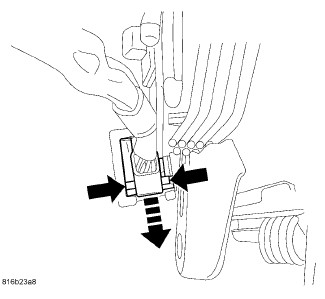 15. Depress the tabs on the rear of the column wiring harness connector and remove the connector from the steering column.