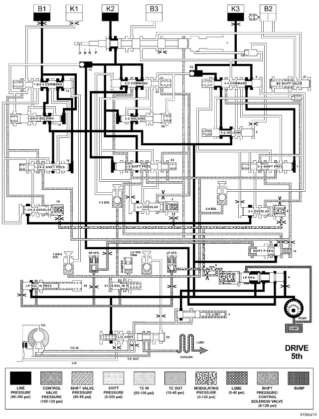 HYDRAULIC FLOW IN DRIVE - FOURTH TO FIFTH GEAR TRANSITION