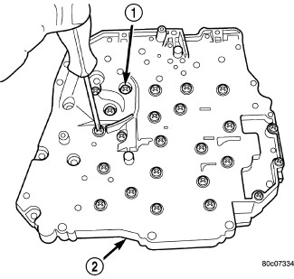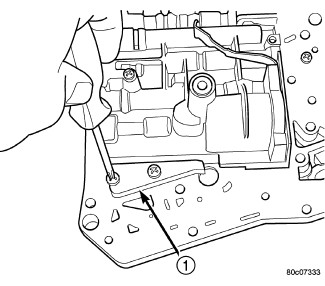 10. Remove valve body stiffener plate (1).