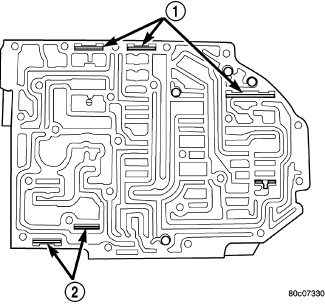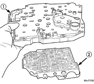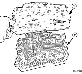 12. Remove transfer/separator plate (1) from valve body (2).