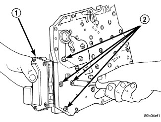 1. Remove the electrical connectors from the pressure control solenoid (1) and the line pressure sensor (2).