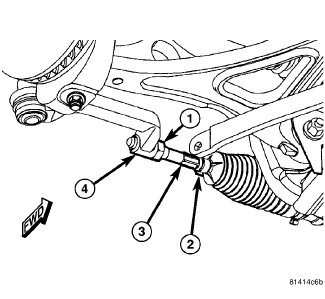 1. Loosen the cam bolt nut securing the toe link to the rear crossmember (front of rear crossmember) just enough to rotate the cam bolt (1).