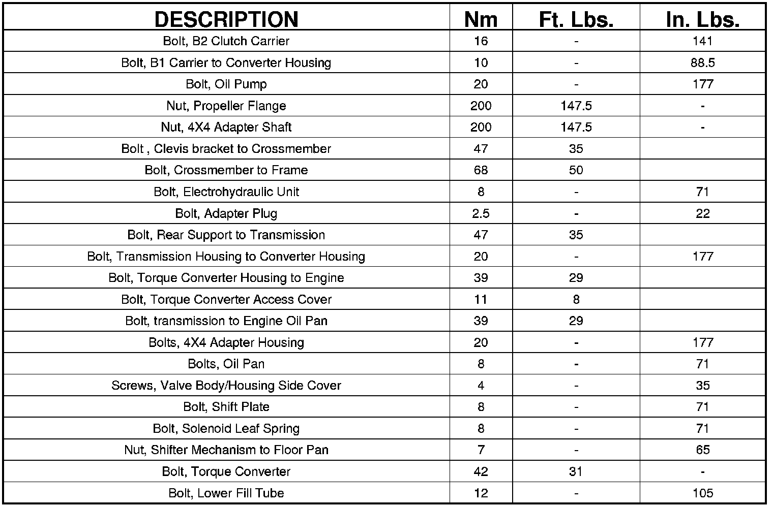 TORQUE SPECIFICATIONS
