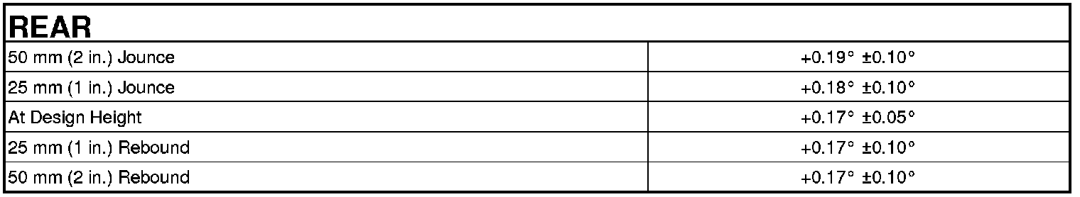 Positive (+) toe is toe-in; negative (-) toe is toe-out.
