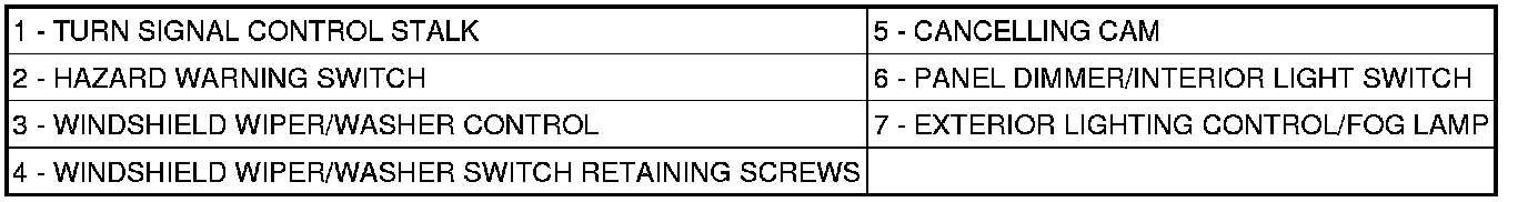 Remove the two retaining screws to the Wiper/Washer Switch.