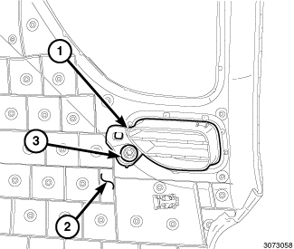 2. Remove the screw (3) that secures the demister outlet (1) to the back of the instrument panel cover and remove the outlet.