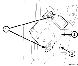 8. Install the screws (1) that secure the mode door actuator bracket to the air distribution housing. Tighten the screws to 2 Nm (17 in. lbs.).
