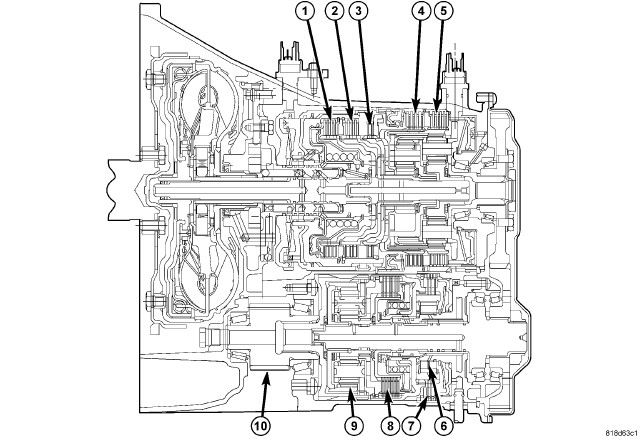 The planetary gear train for the 62TE transaxle provides six forward gear ratios, including two fourth gear ratios. One reverse gear ratio is also provided.
