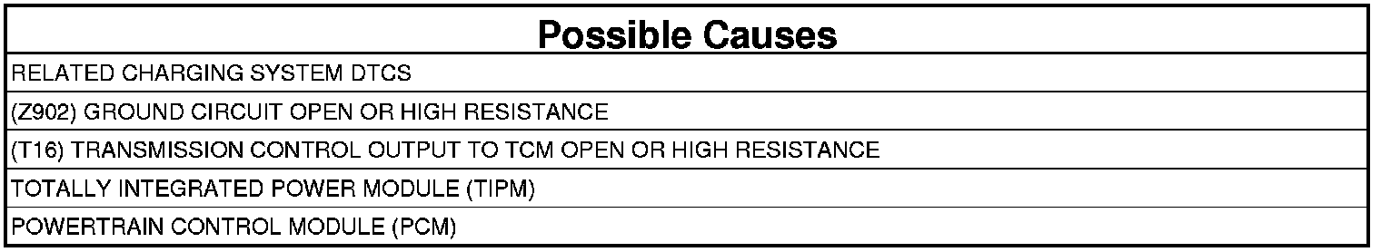 - Repair the (T16) Transmission Control Relay Output circuit(s) for an open or high resistance.