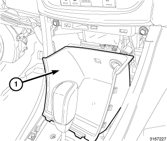 8. Remove the center console (1) from the vehicle.