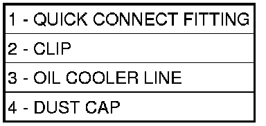 4. Slide the dust cap (4) down the transmission cooler line and snap it over the quick connect fitting until it is fully seated and rotates freely. The dust cap will only snap over the quick connect fitting when the transmission cooler line is properly installed.
