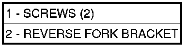 13. Remove two screws (1) retaining reverse fork bracket (2).