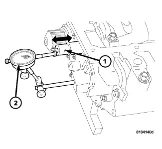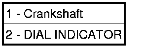 1. Mount a dial indicator (2) to front of engine with the locating probe on nose of crankshaft (1).