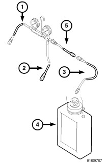 2. Read the Fuel Pressure Gauge (3) and record the reading. The fuel pressure specification is 407 kPa +/- 34 kPa (59 psi +/- 5 psi).
