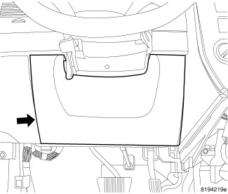 9. Place the steering column opening cover (1) in place and seat the clips fully.
