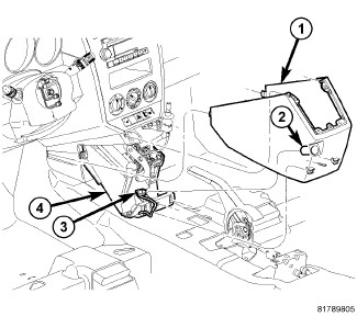 4. Disconnect console housing wire connector (2) and instrument panel connector (3).