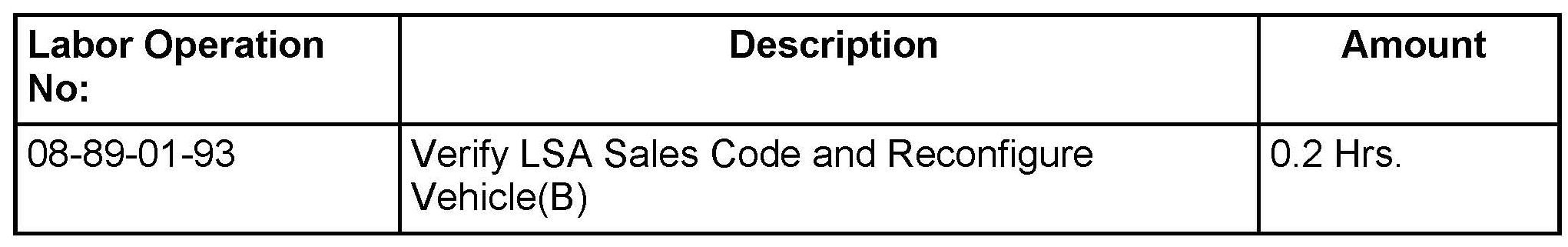 b. No >>> Create a trouble ticket referencing this bulletin and indicating that the LSA sales code will need to be added to the vehicle in question.