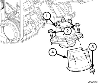27. Remove the starter motor (1) heat shield (4).