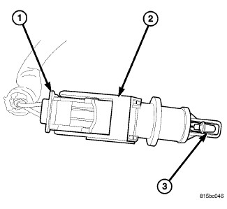 1. Install the IAT sensor (2) into the rubber air intake hose, turn the IAT sensor 1/4 turn clockwise and lock into position.