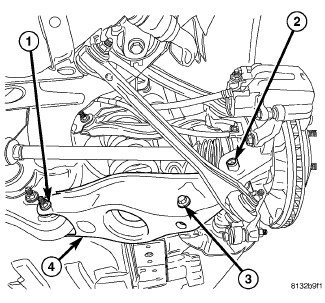 10. Remove bolt and nut (1) fastening spring link (4) to crossmember.
