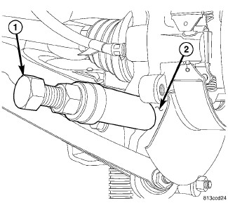 4. Remove spring link-to-knuckle nut and bolt (2).
