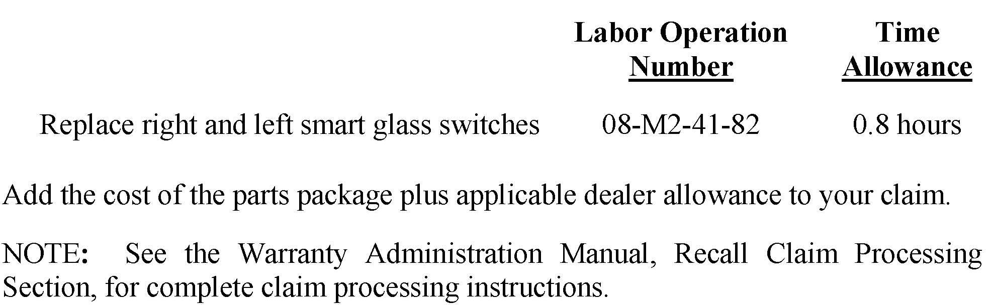 The right and left side smart glass switch located on the door latch assembly must be replaced.