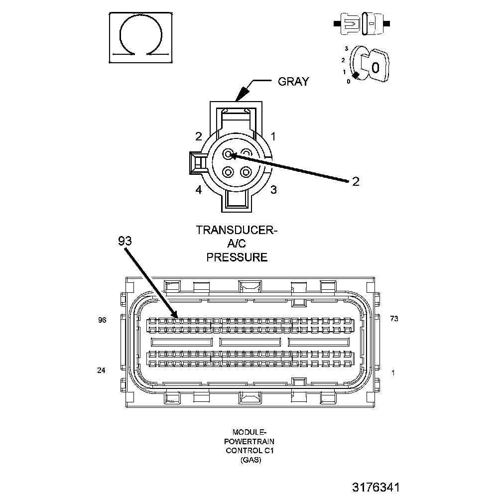 1. Using the wiring diagram/schematic as a guide, inspect the wiring and connectors between the A/C Pressure Transducer and the Powertrain Control Module (PCM).