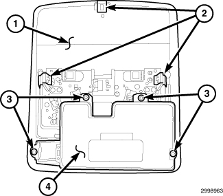 1. Position the Remote Compass Module (RCM) (4) onto the overhead console.