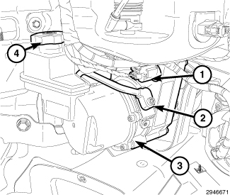 NOTE: The power steering fluid reservoir (4) is integrated with the Electro Hydraulic Power Steering (EHPS) pump.