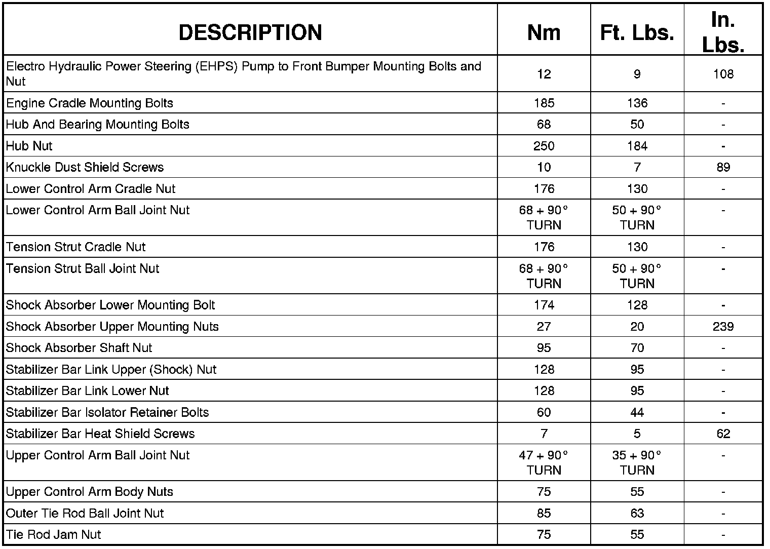 Front Suspension Specifications