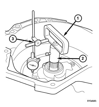 15. Position Bearing Remover (1) to the transmission case (2) and over the inner race of the output shaft bearing (3).