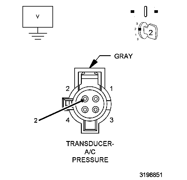 1. Measure the voltage at the (K852) 5-Volt Supply circuit at the A/C Pressure Transducer harness connector.