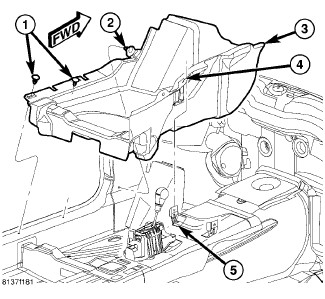 6. Reinstall the center console onto the front floor panel transmission tunnel. Floor Console - Installation.